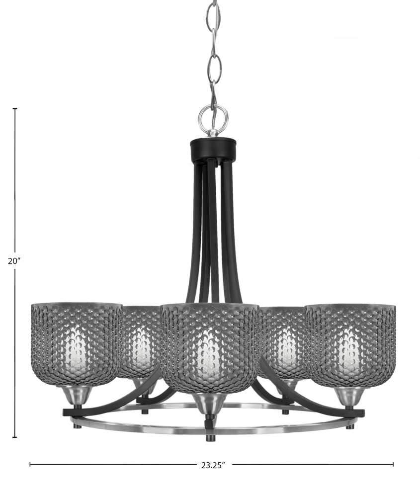 Paramount 5 Light Uplight Chandelier Shown In Matte Black & Brushed Nickel Finish With 6 Smoke Textured Glass