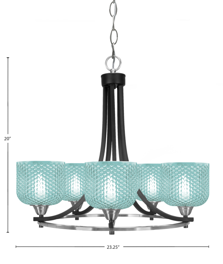 Paramount 5 Light Uplight Chandelier Shown In Matte Black & Brushed Nickel Finish With 6 Turquoise Textured Glass