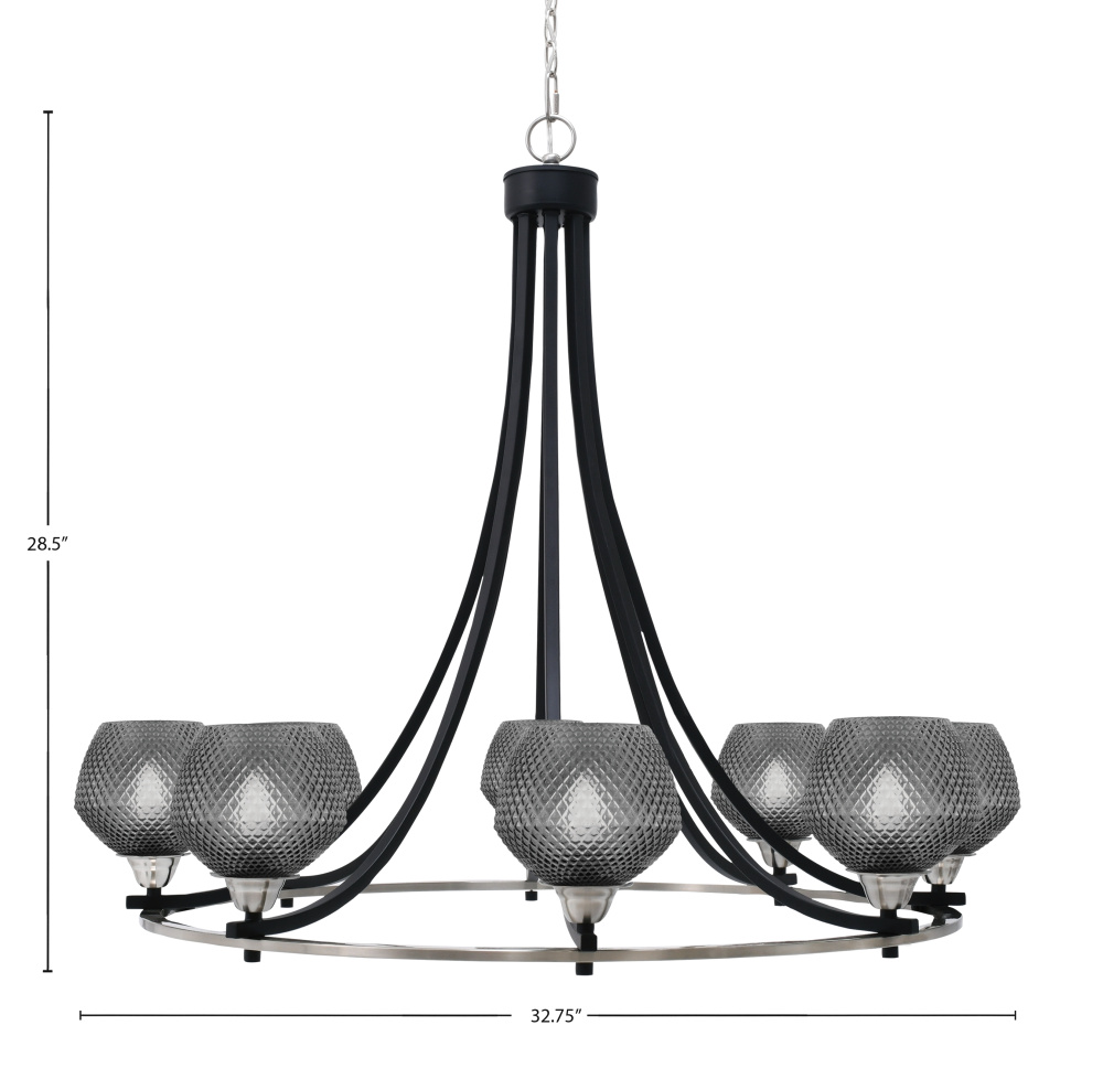 Paramount 8 Light Uplight Chandelier Shown In Matte Black & Brushed Nickel Finish With 6 Smoke Textured Glass