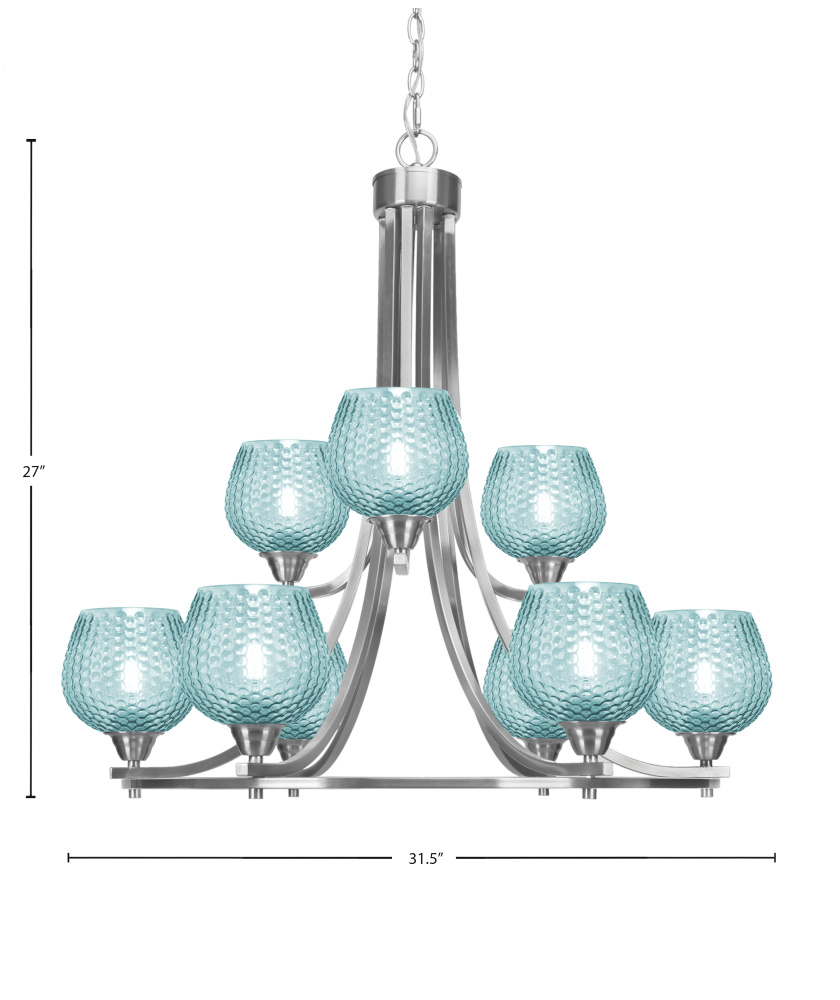 Paramount 9 Light Uplight Chandelier Shown In Brushed Nickel Finish With 6 Turquoise Textured Glass
