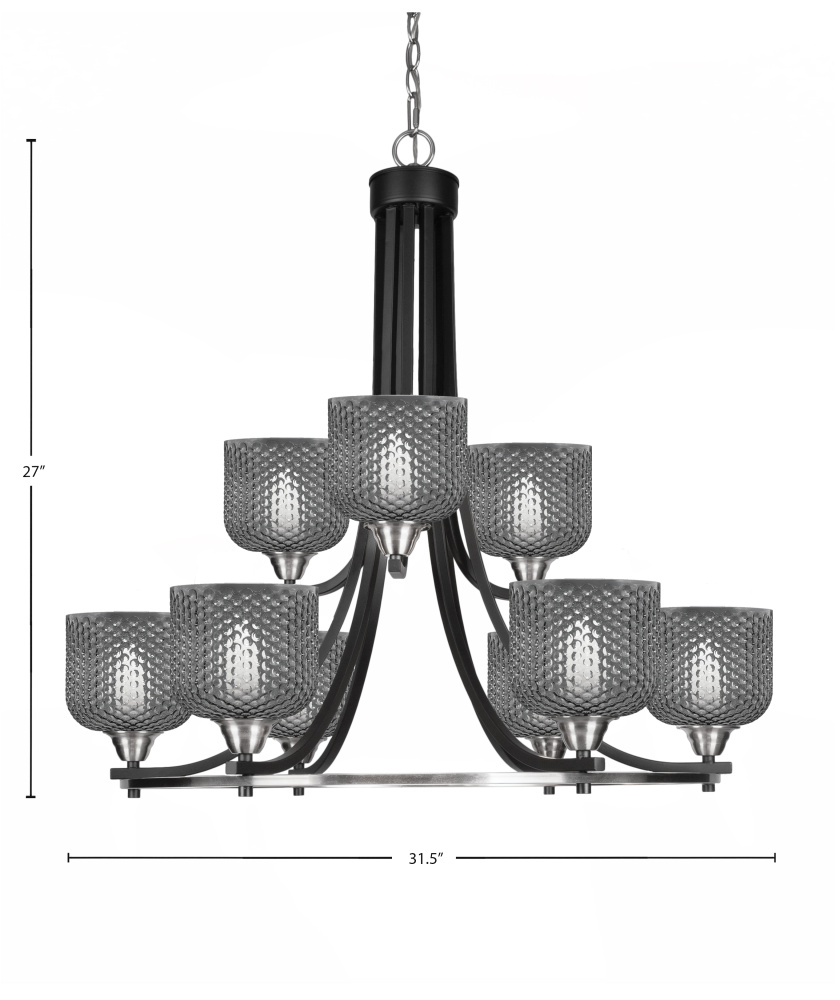 Paramount 9 Light Uplight Chandelier Shown In Matte Black & Brushed Nickel Finish With 6 Smoke Textured Glass