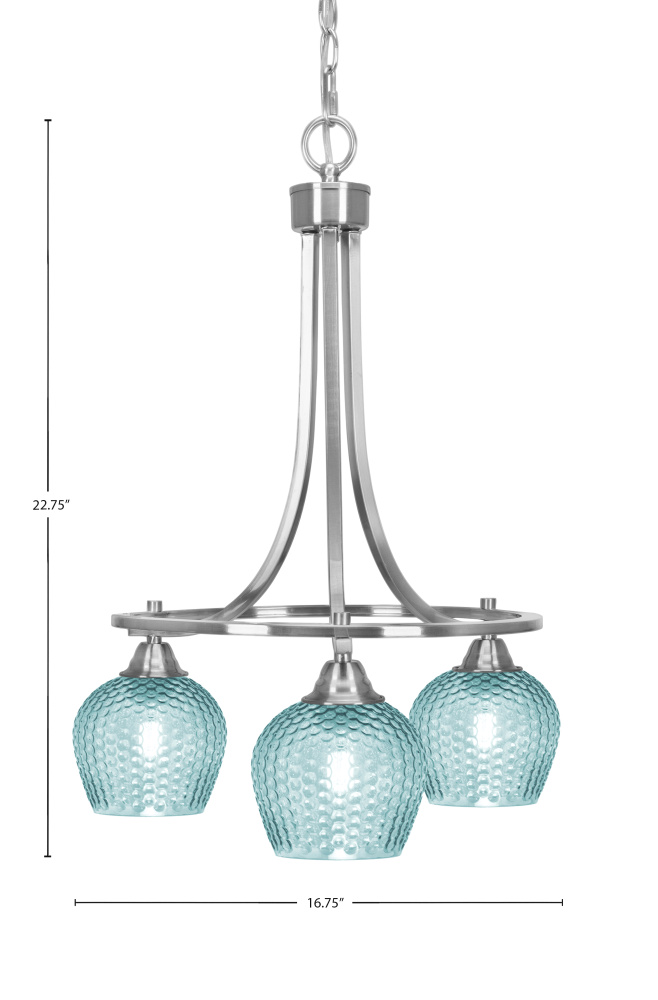 Paramount 3 Light Downlight Chandelier Shown In Brushed Nickel Finish With 6 Turquoise Textured Glass