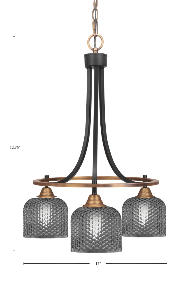 Paramount 3 Light Downlight Chandelier Shown In Matte Black & Brass Finish With 6 Smoke Textured Glass
