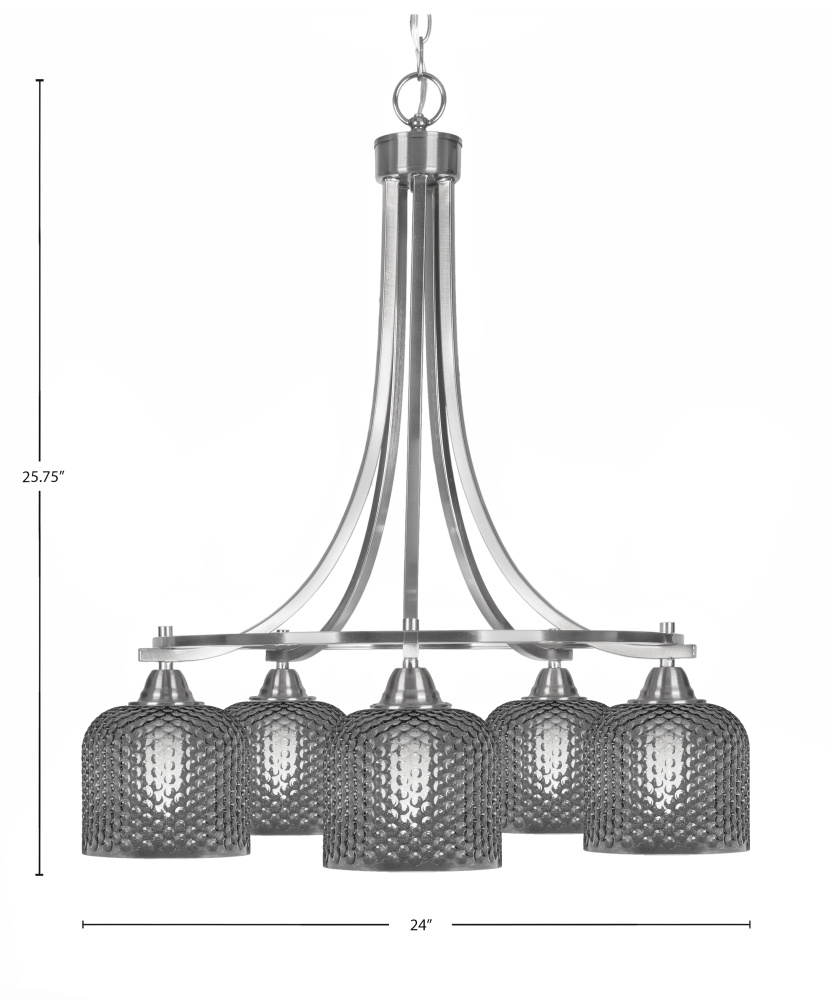 Paramount 5 Light Downlight Chandelier Shown In Brushed Nickel Finish With 6 Smoke Textured Glass