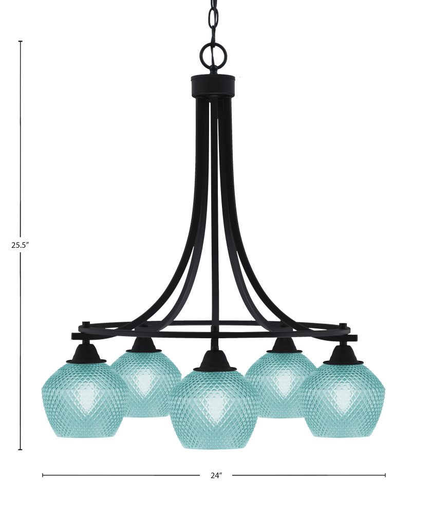 Paramount 5 Light Downlight Chandelier Shown In Matte Black Finish With 6 Turquoise Textured Glass