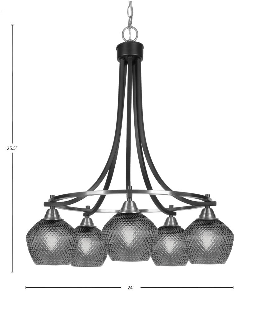 Paramount 5 Light Downlight Chandelier Shown In Matte Black & Brushed Nickel Finish With 6 Smoke Textured Glass