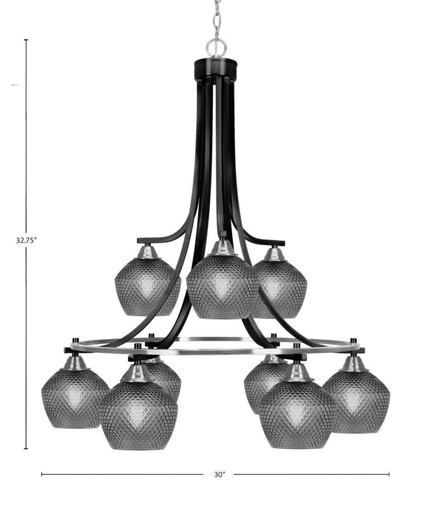 Paramount 9 Light Downlight Chandelier Shown In Matte Black & Brushed Nickel Finish With 6 Smoke Textured Glass