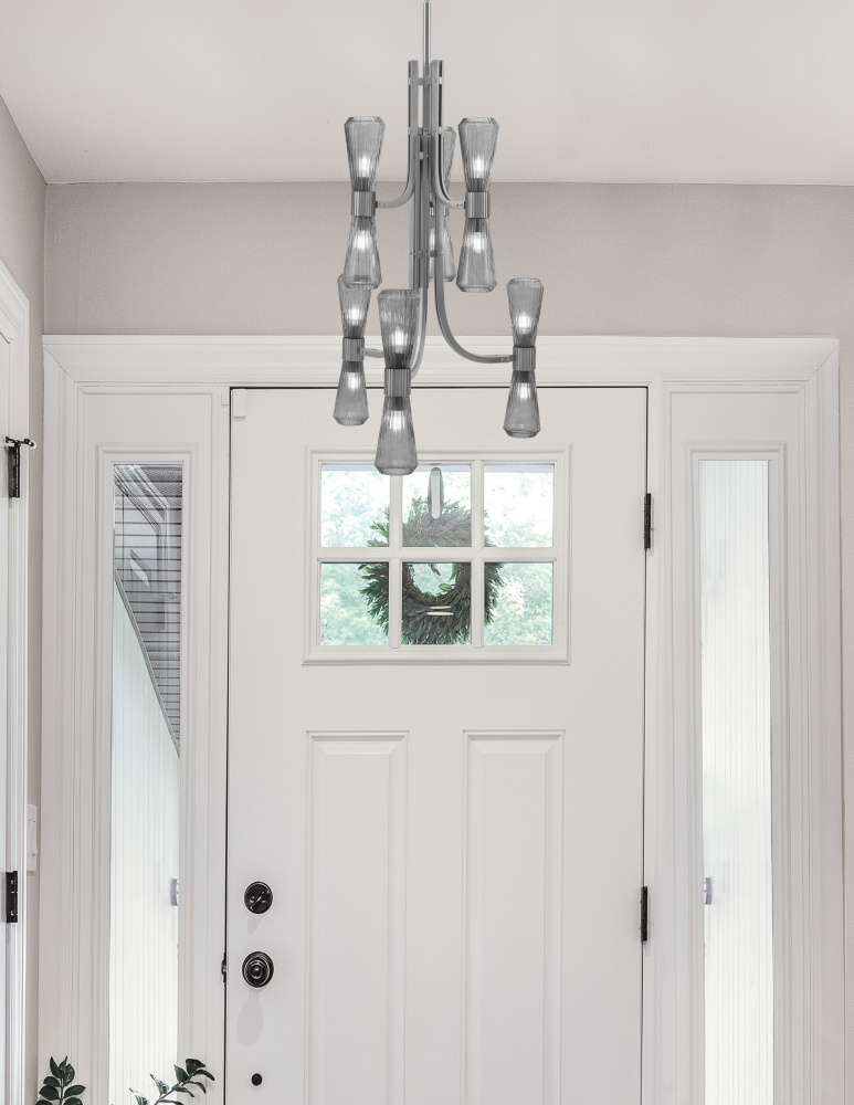Bold and contemporary, the Everleigh 12 Light Chandelier in Graphite finish brings architectural elegance to modern interiors. Its clean, tiered silhouette supports, twelve evenly spaced 4? smoke glass shades, offering a rich, moody glow that enhances ambiance without overpowering the space. The Graphite finish adds a sleek, industrial edge, while the smoke glass softens the look with atmospheric light diffusion.