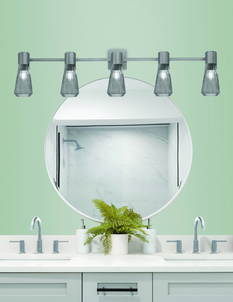 Enhance the ambiance of your bathroom with the Everleigh 5 Light Bath Bar. The striking Graphite finish adds a contemporary edge, while the 4? Smoke Glass shades offer a warm, inviting glow. Perfect for above vanities or in powder rooms, the five lights provide ample illumination, making it both a practical and stylish addition to your space.