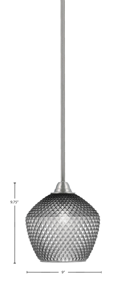 Paramount Stem Hung Mini Pendant Shown In Brushed Nickel Finish With 9 Smoke Textured Glass