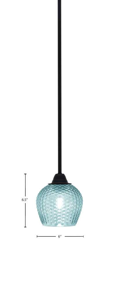 Paramount Stem Hung Mini Pendant Shown In Matte Black Finish With 6 Turquoise Textured Glass