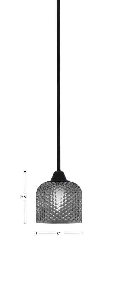Paramount Stem Hung Mini Pendant Shown In Matte Black Finish With 6 Smoke Textured Glass