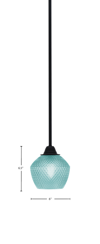 Paramount Stem Hung Mini Pendant Shown In Matte Black Finish With 6 Turquoise Textured Glass