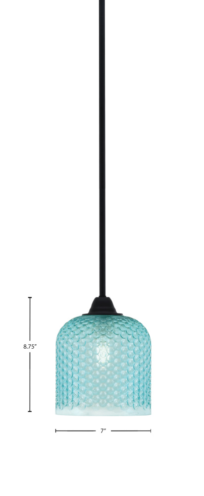 Paramount Stem Hung Mini Pendant Shown In Matte Black Finish With 7 Turquoise Textured Glass