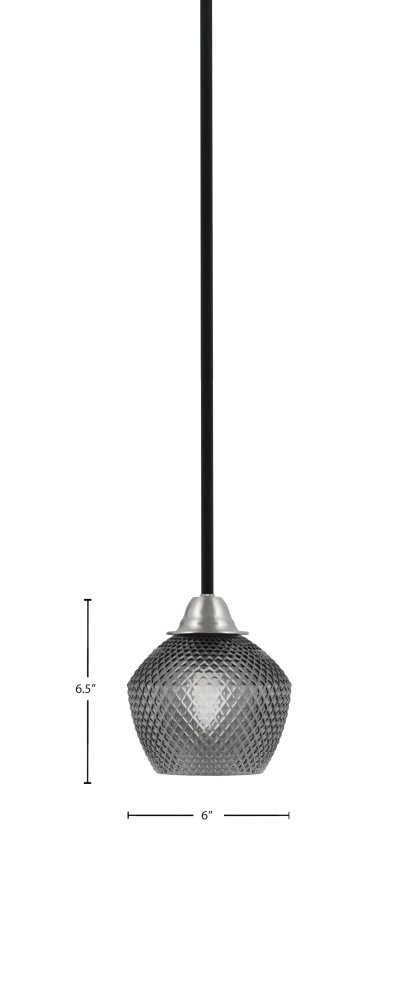 Paramount Stem Hung Mini Pendant Shown In Matte Black & Brushed Nickel Finish With 6 Smoke Textured Glass