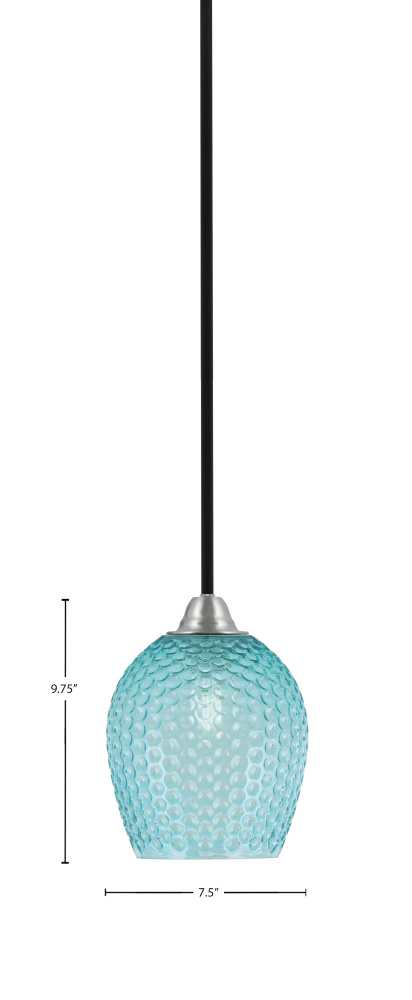 Paramount Stem Hung Mini Pendant Shown In Matte Black & Brushed Nickel Finish With 7.5 Turquoise Textured Glass
