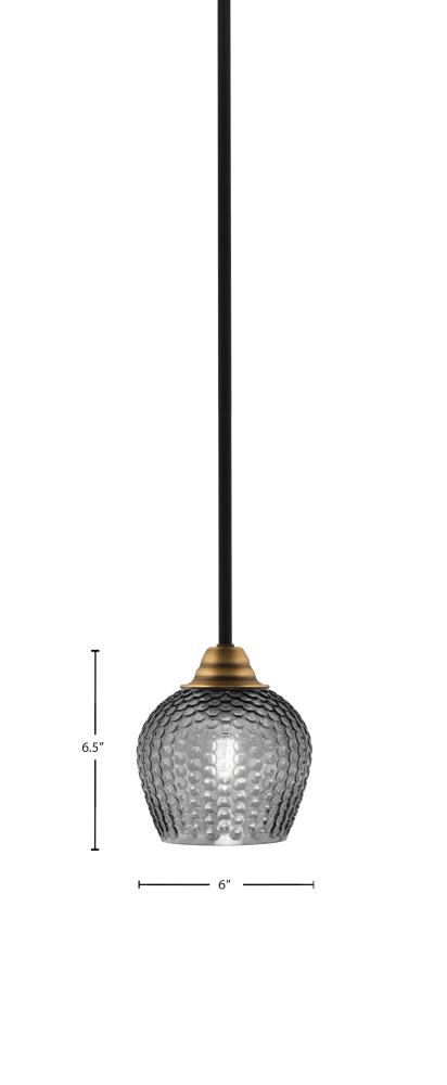 Paramount Stem Hung Mini Pendant Shown In Matte Black & Brass Finish With 6 Smoke Textured Glass