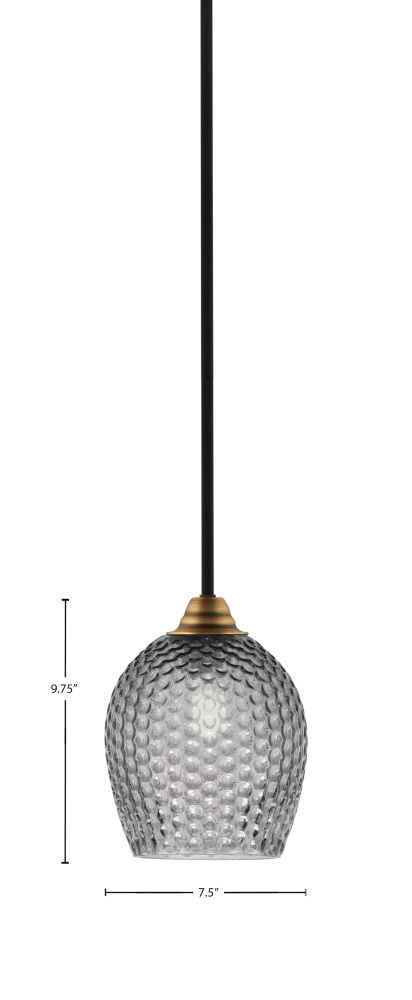 Paramount Stem Hung Mini Pendant Shown In Matte Black & Brass Finish With 7.5 Smoke Textured Glass