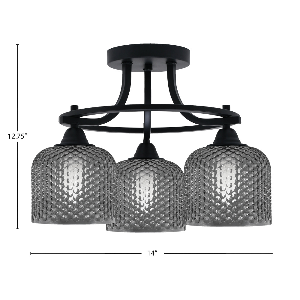 Paramount 3 Light Semi Flush Shown In Matte Black Finish With 6 Smoke Textured Glass