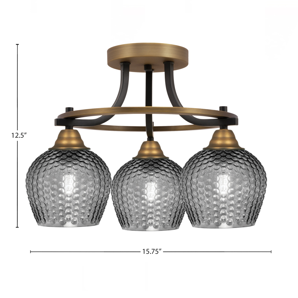Paramount 3 Light Semi Flush Shown In Matte Black & Brass Nickel Finish With 6 Smoke Textured Glass