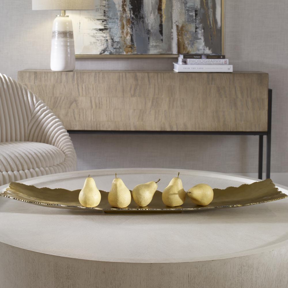 Dramatic Proportions and Thick Cast Aluminum Make This Tray Special. The Edge is Rough Cut, and Polished to Have A Soft Hand. Finish is A Textured Warm Nickel.