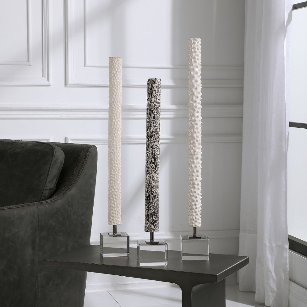 Ceramic Constructed Trio is Inspired By Global Travels and Exhibits A Trendy Black and White Color Story. Each is Accented By Polished Chrome and Crystal Details. Sizes: S-4x24x4, M-4x27x4, L-4x29x4