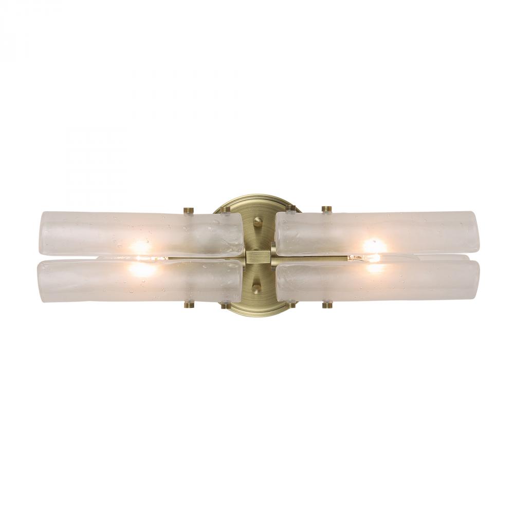 Two Handmade Glass Panels Of Translucent White Seeded Glass Complete Each Shade Of This Opulent Sconce With An Antique Brass Finish. 2-60 Watt Max Candelabra Sockets. Bulbs Not Included. Mount Either Vertical Or Horizontal For Upmost Flexibility.
