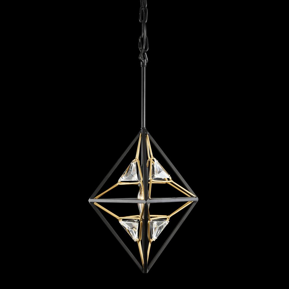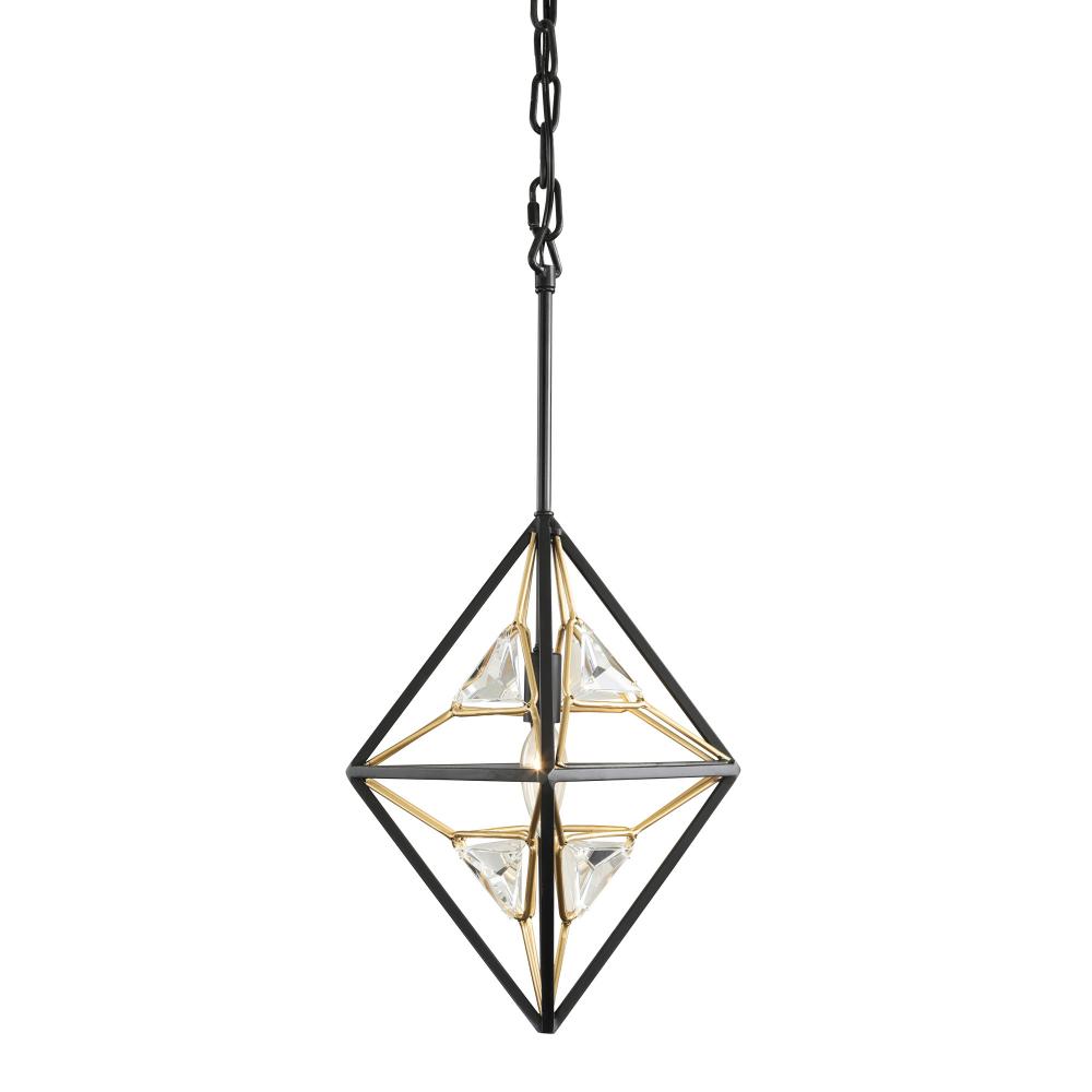 Intricate Geometric Metal Work. Custom Triangular Crystal. Matte Black and French Gold Finish