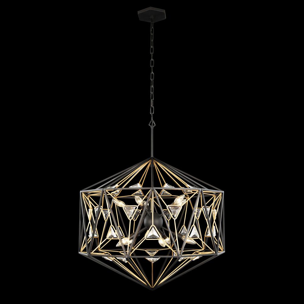 Intricate Geometric Metal Work. Custom Triangular Crystal. Matte Black and French Gold Finish