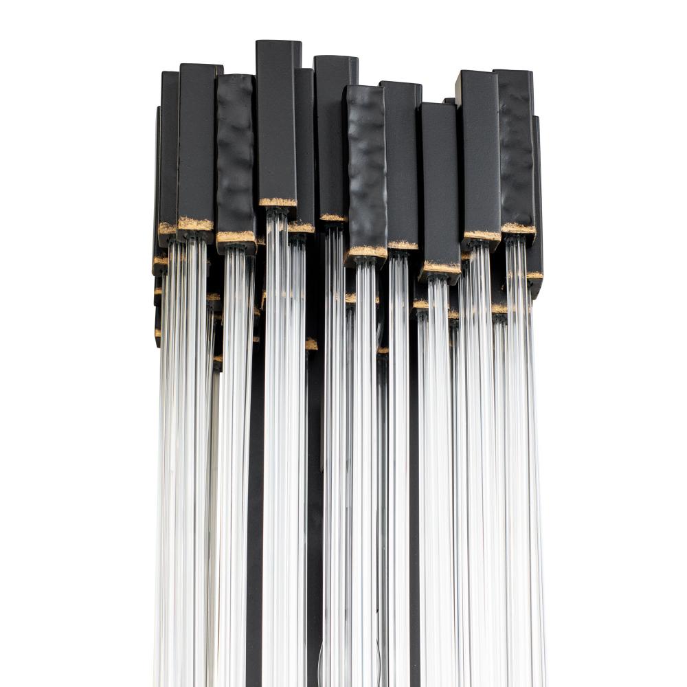 Hand Forged Recycled Steel. Handsomely Hammered Elements. Fluted 70'S Inspired Clear Glass Rods.