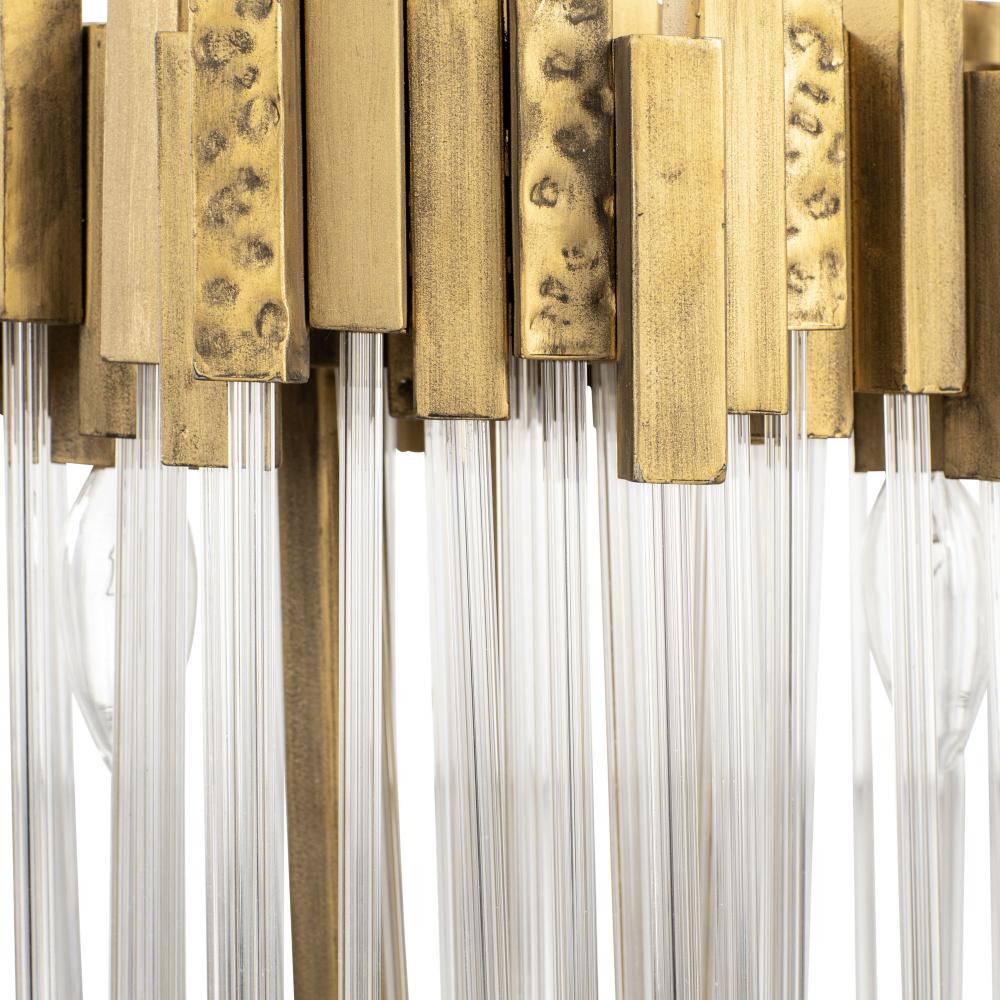 Hand Forged Recycled Steel. Handsomely Hammered Elements. Fluted 70'S Inspired Clear Glass Rods.