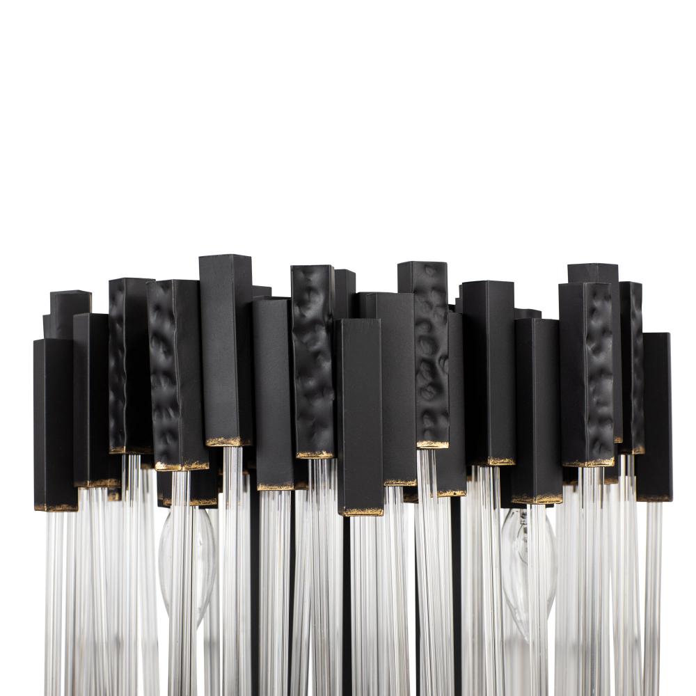 Hand Forged Recycled Steel. Handsomely Hammered Elements. Fluted 70'S Inspired Clear Glass Rods.