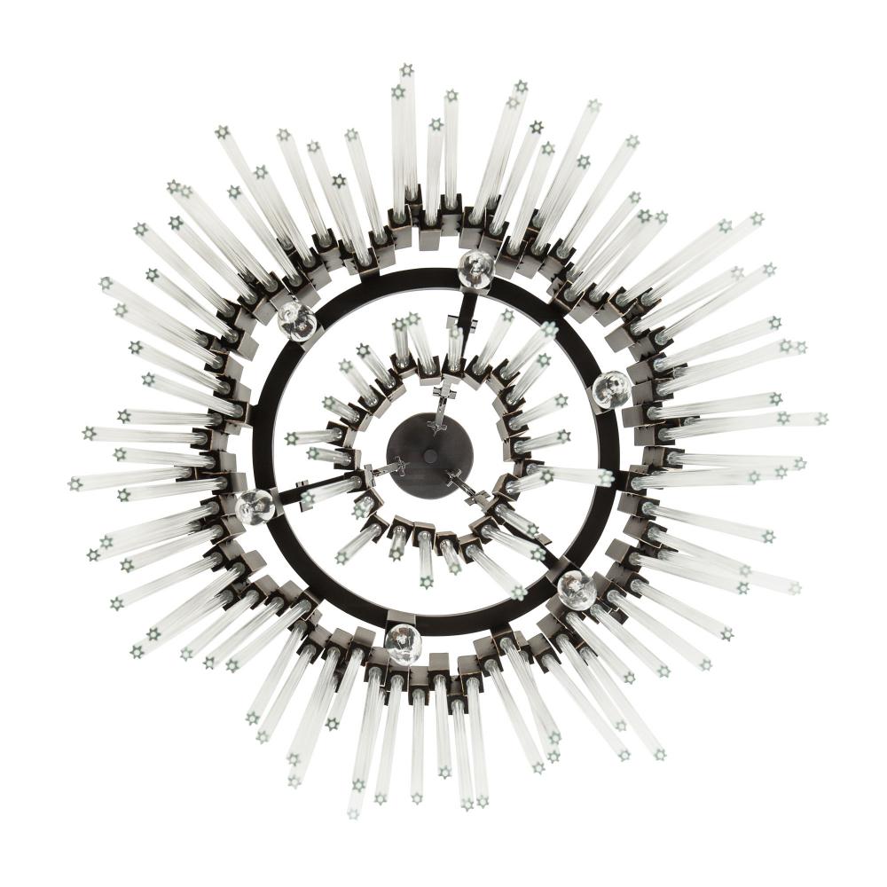 Hand Forged Recycled Steel. Handsomely Hammered Elements. Fluted 70'S Inspired Clear Glass Rods.