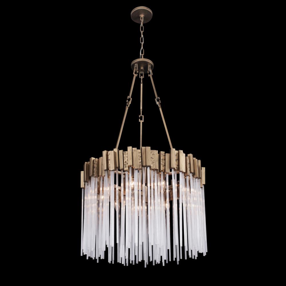 Hand Forged Recycled Steel. Handsomely Hammered Elements. Fluted 70'S Inspired Clear Glass Rods.
