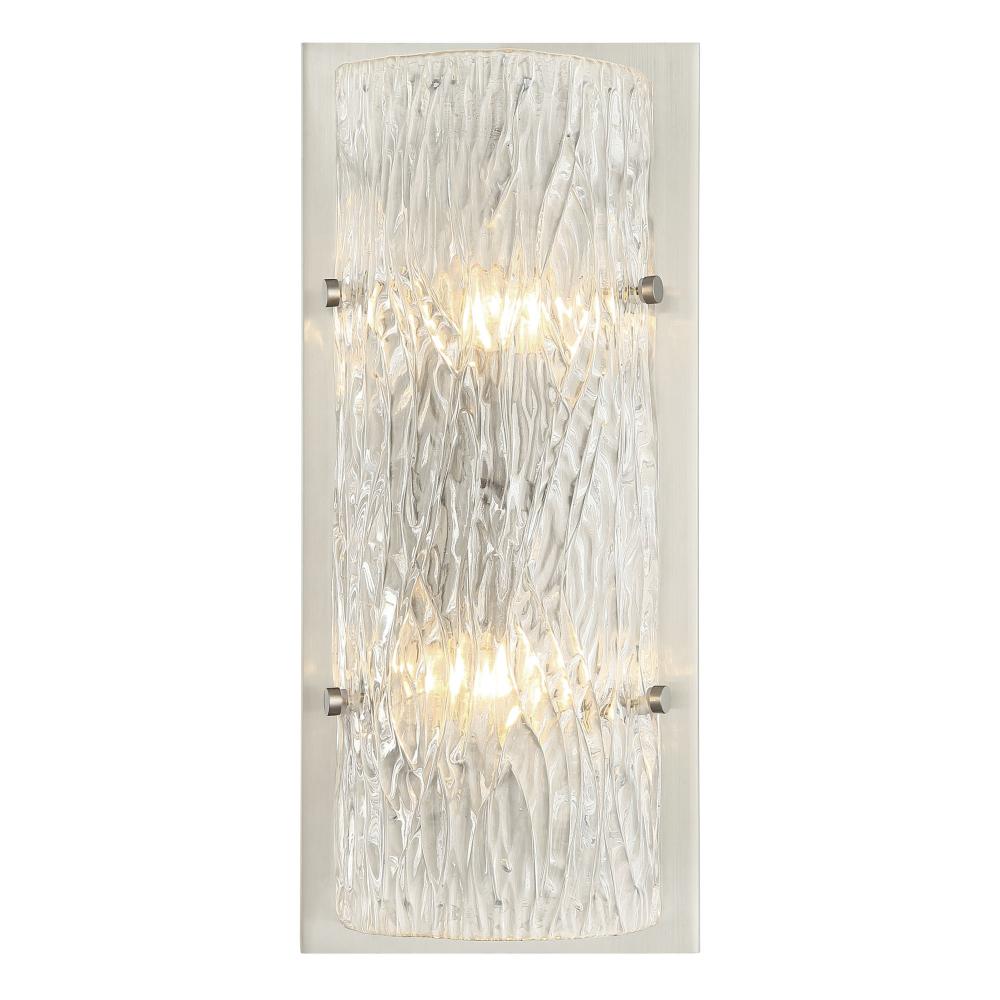 Hand-made Ice Glass with Pattern Stamped on Both Sides. Slightly Oversize Back Plate Creates a Visual Frame. Adjustable Hardware.