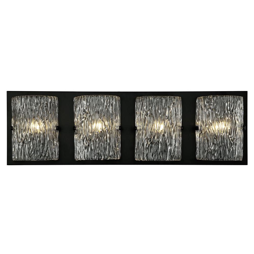 Hand-made Ice Glass with Pattern Stamped on Both Sides. Slightly Oversize Back Plate Creates a Visual Frame. Adjustable Hardware.