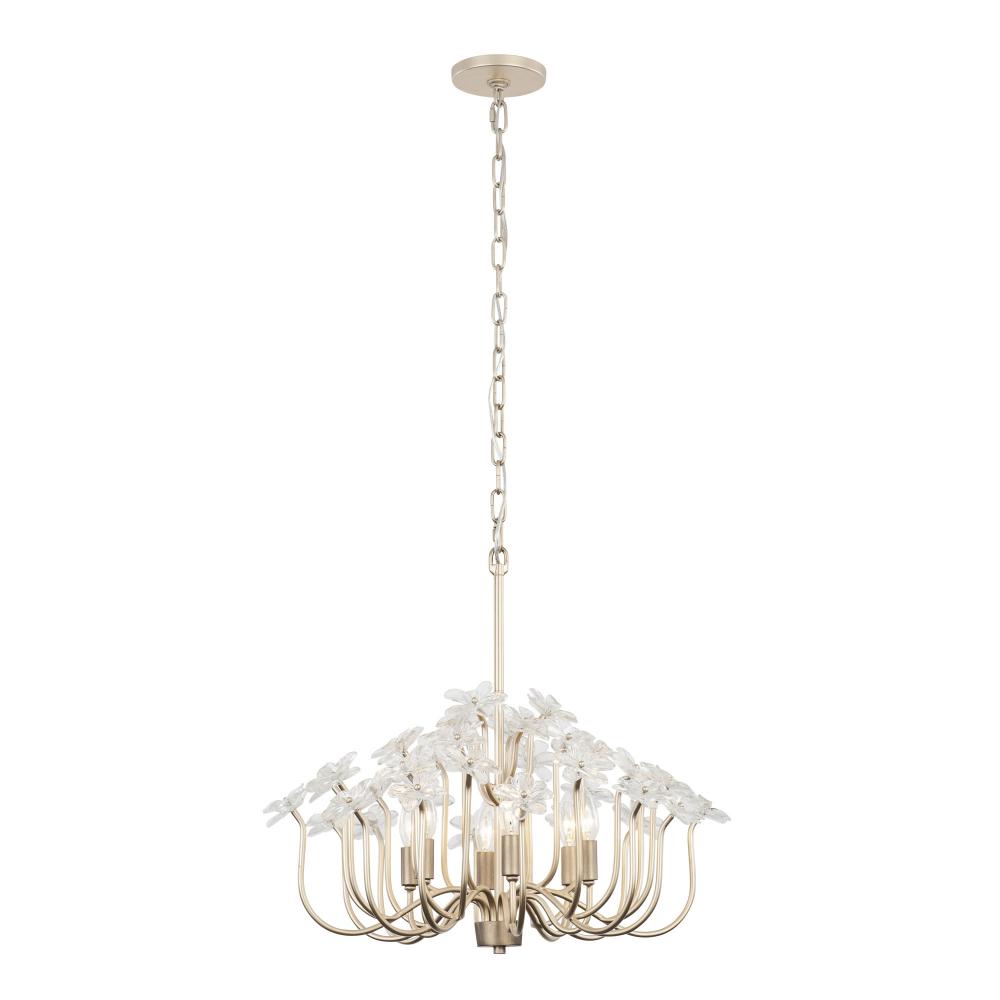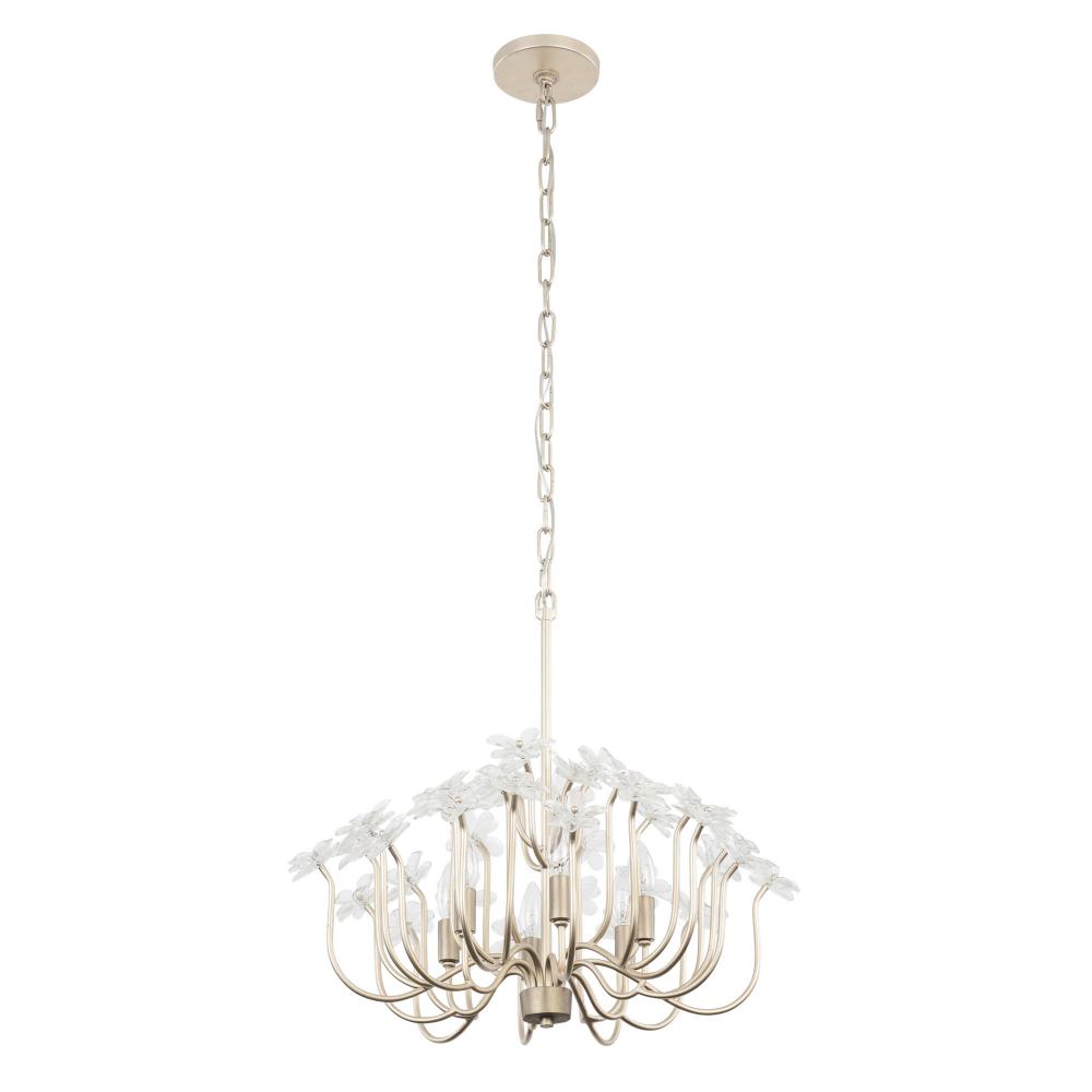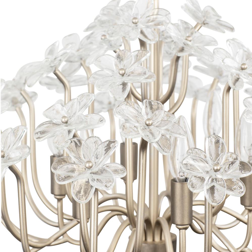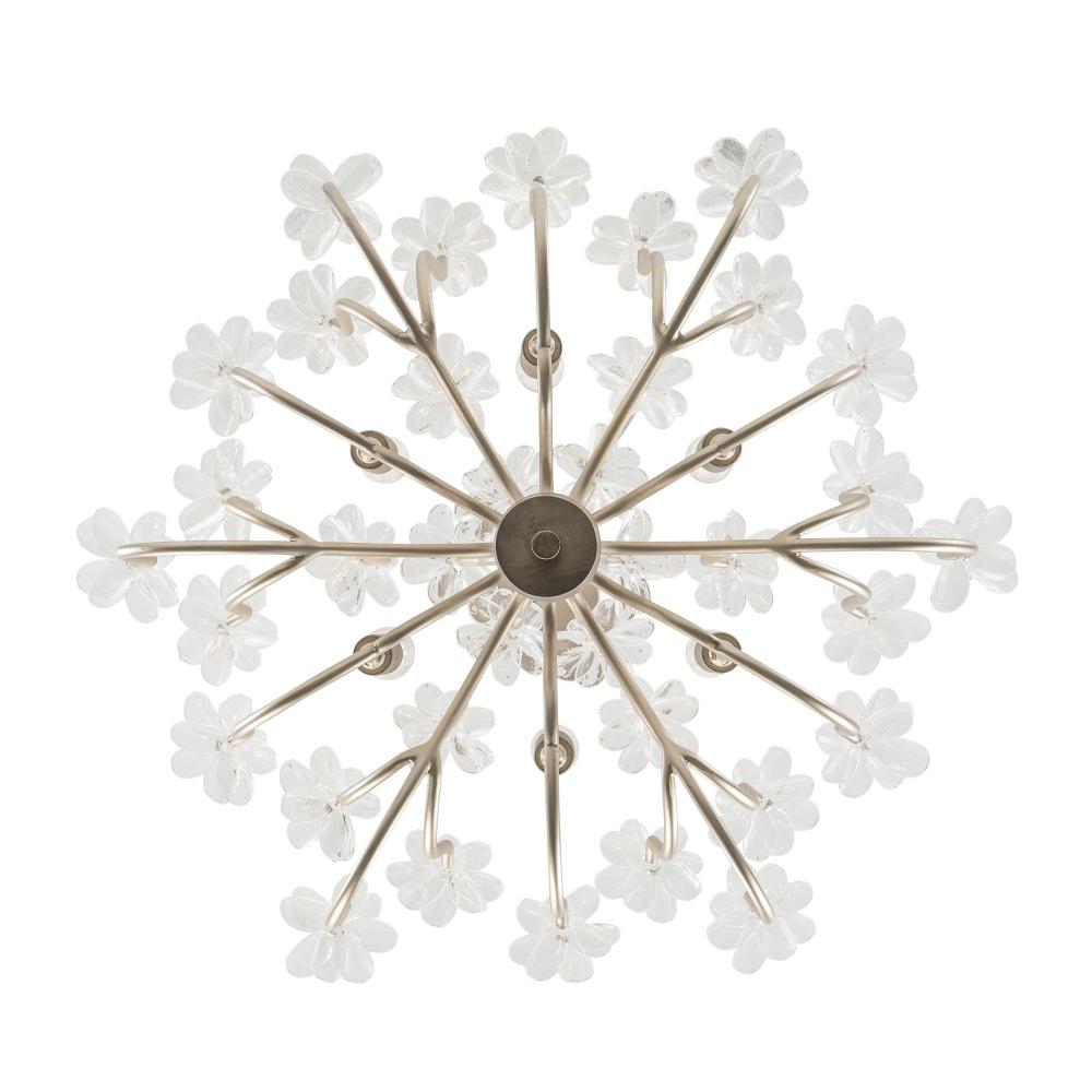 When you first see it aglow with its fine intricacies, it may not show, but the Wildflower collection started its path to existence thanks to Mary V. Walcott's Oconee-Bells discovered in the Smithsonian Libraries and Archives Special Collections. Taking center stage is a touch of Danish modern on top of midcentury. Wildflower combines delicate, handmade ice glass flower petals, with equally delicate wispy hand-forged and recycled steel tubing and metal work. Available in gold or black.