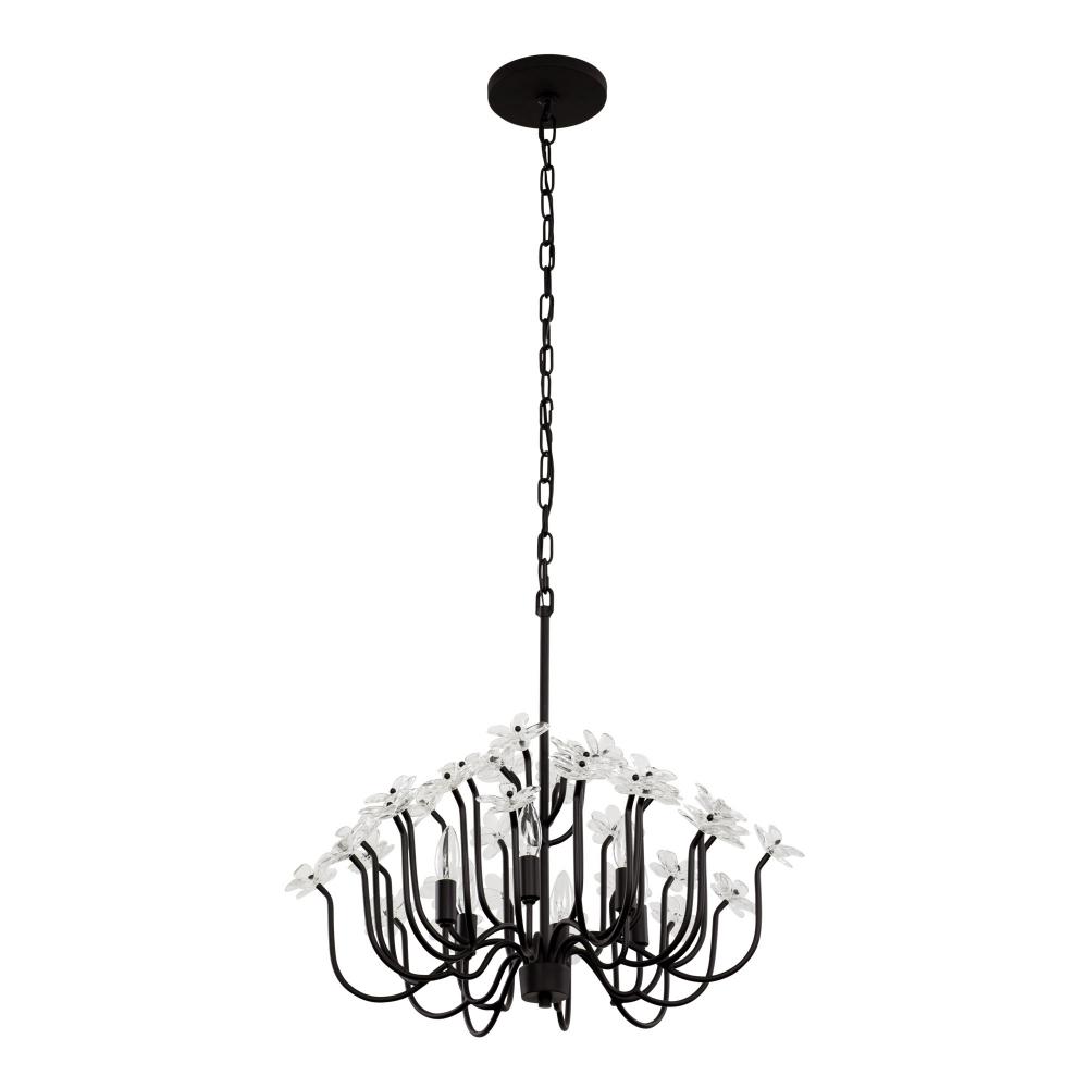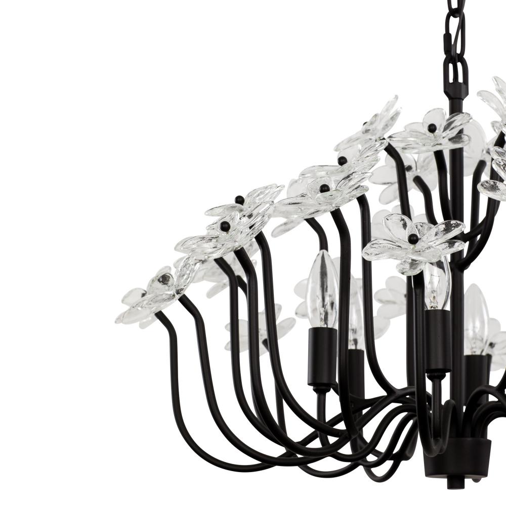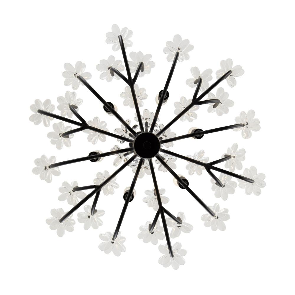 When you first see it aglow with its fine intricacies, it may not show, but the Wildflower collection started its path to existence thanks to Mary V. Walcott's Oconee-Bells discovered in the Smithsonian Libraries and Archives Special Collections. Taking center stage is a touch of Danish modern on top of midcentury. Wildflower combines delicate, handmade ice glass flower petals, with equally delicate wispy hand-forged and recycled steel tubing and metal work. Available in gold or black.