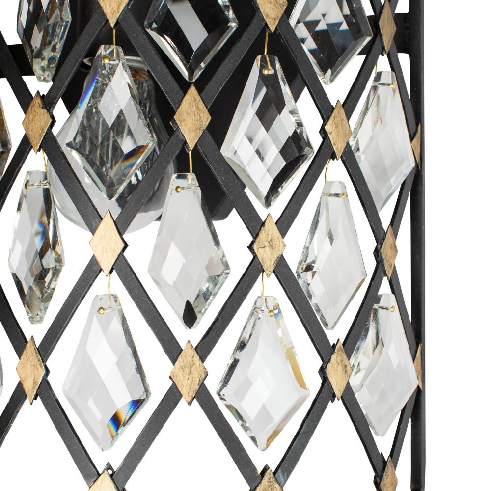 Hand Forged Recycled Steel. Double Harlequin Metal Frame. Premium Kite Shaed Optic Crystal Pendalogues.