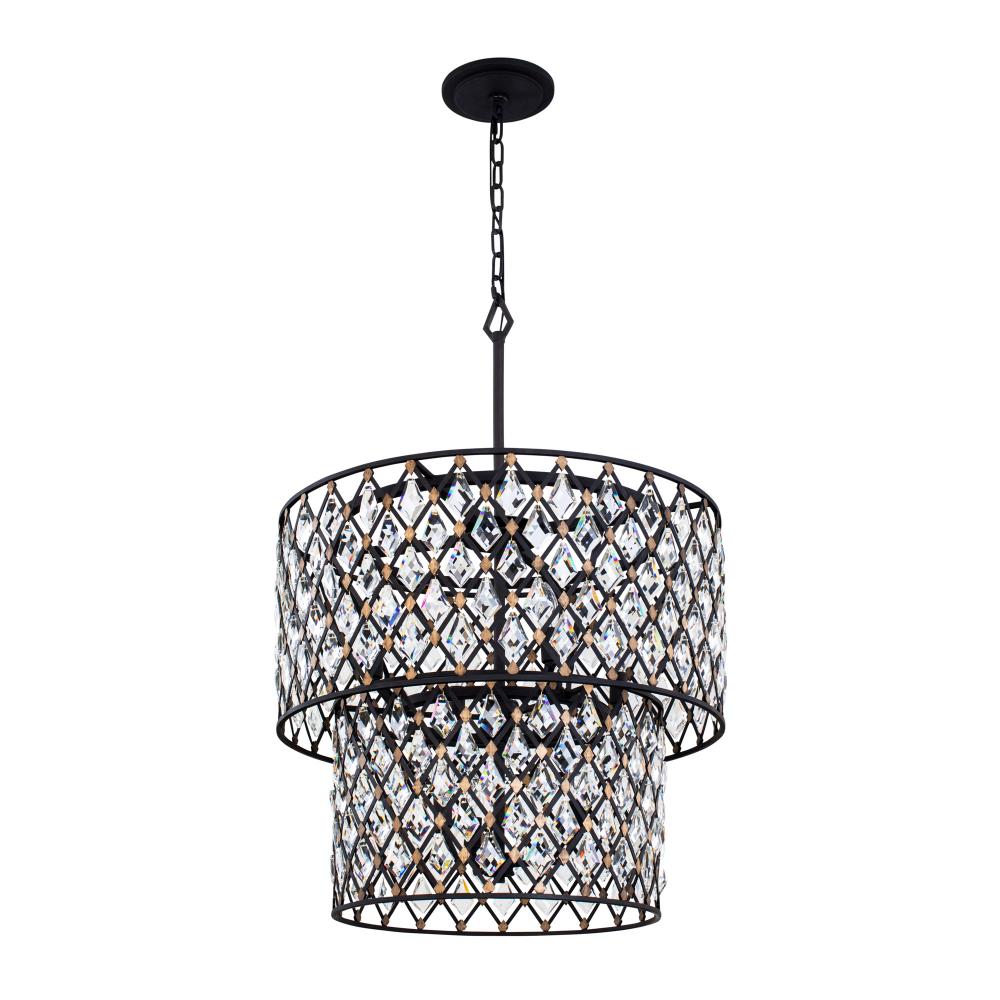 Hand Forged Recycled Steel. Double Harlequin Metal Frame. Premium Kite Shaped Optic Crystal Pendalogues.