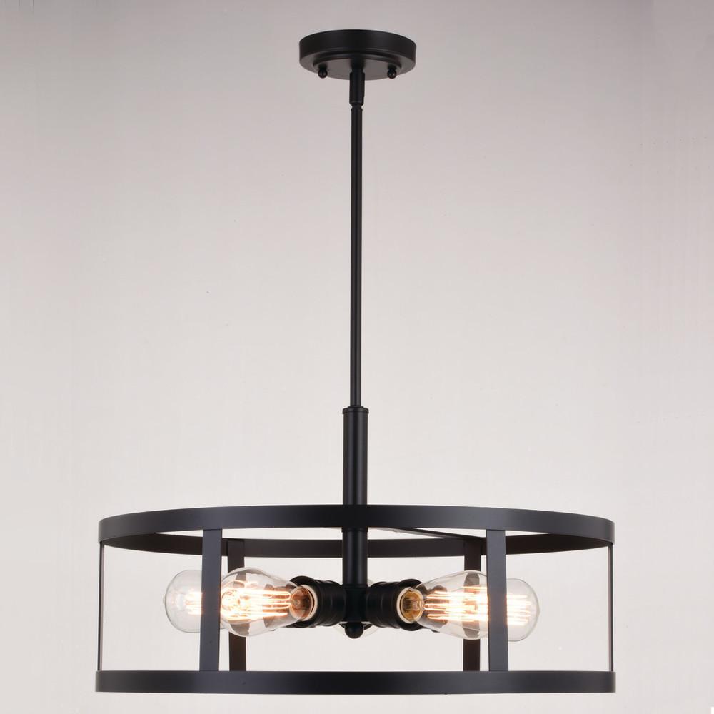 The modern soft industrial Akron collection has style and charm. A drum shape takes the stage in an oil rubbed bronze finish which surrounds the perfectly placed curving lamping, creating an ideal pairing. This 5-light pendant is perfect in any indoor space such as hallway, dining, or kitchen.