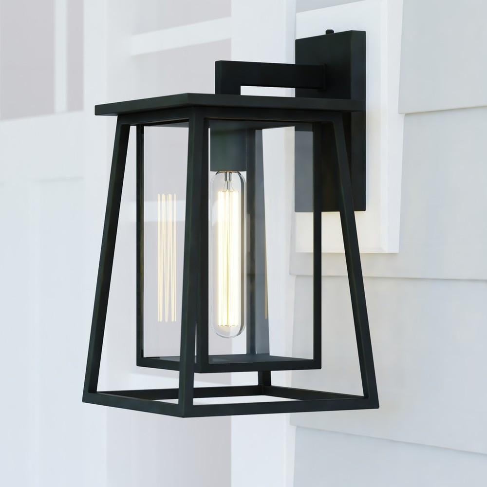 A tapered matte black double frame makes a stunning statement in the Blackwell outdoor collection. Clear seeded glass surrounds the warm glow of light in this contemporary lantern style wall light. The Blackwell creates a sleek element of class to perfectly coordinate any style choice. Ideal for covered porches, entryways, or any other area of your home.