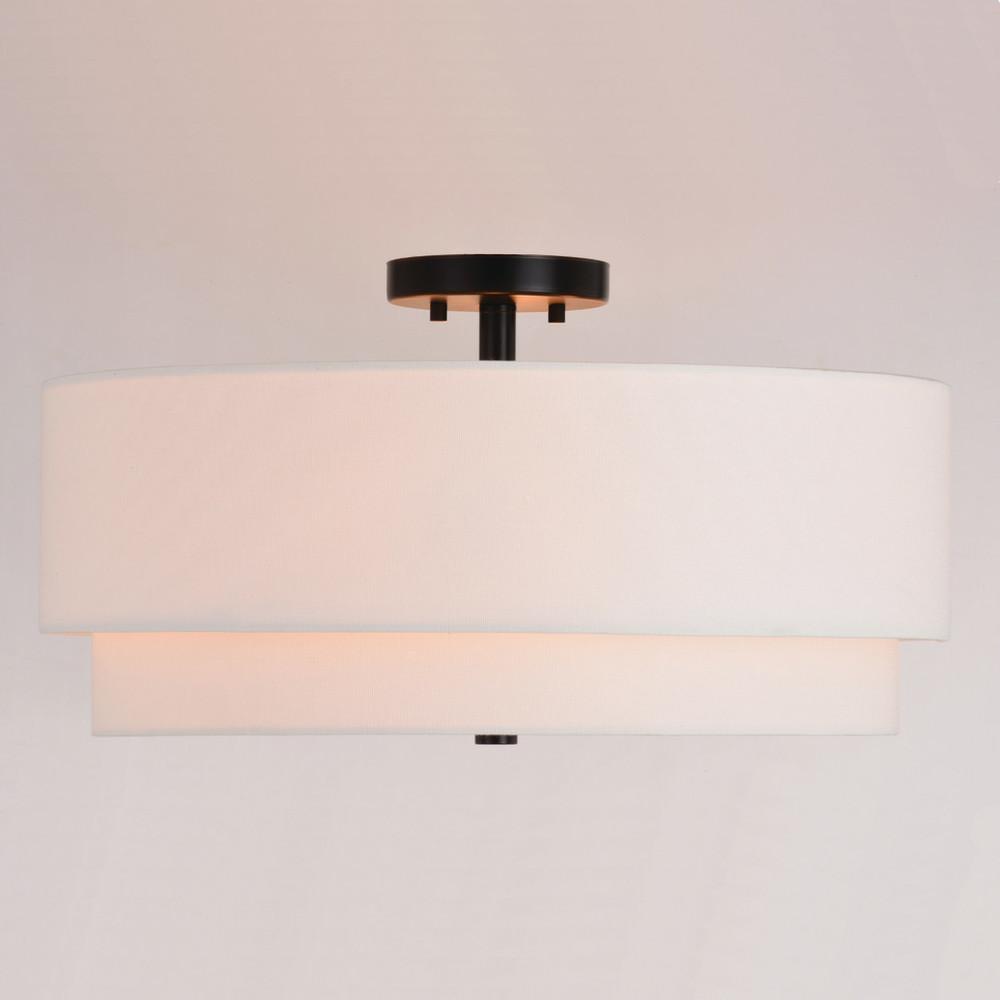 Indulge your mid-century modern dreams with this timeless collection. The Burnaby collection brings an undeniably updated feel to your vintage styling with its interplay of linen and black. This semi-flush mount ceiling light is perfect for a low ceiling foyer, living room, hallway, entryway, or bedroom. Its soft mid-century modern style is enhanced by a white linen drum shade. An acrylic diffuser hides the bulbs and creates even light distribution.
