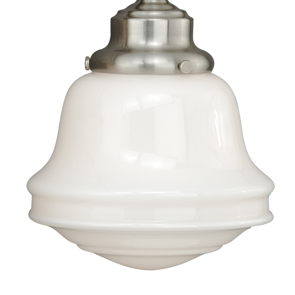 The Huntley is a timeless collection inspired by mid-century small-town aesthetics. The vintage school house glass is the focal point of this design with its unique profile and glass options. Offered in multiple finishes and glass options, this versatile farmhouse light will provide a unique accent to a variety of kitchen, dining, and bathroom settings. Medium screw base lamping provides maximum light output. The complete collection includes chandeliers, pendants, semi-flush ceiling lights, and 1, 2 3, and 4 light bathroom vanities.