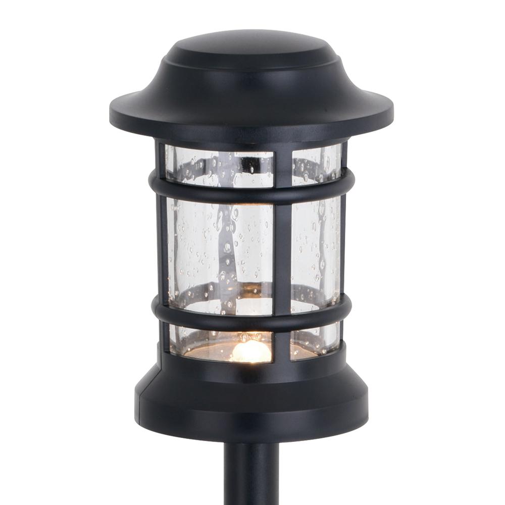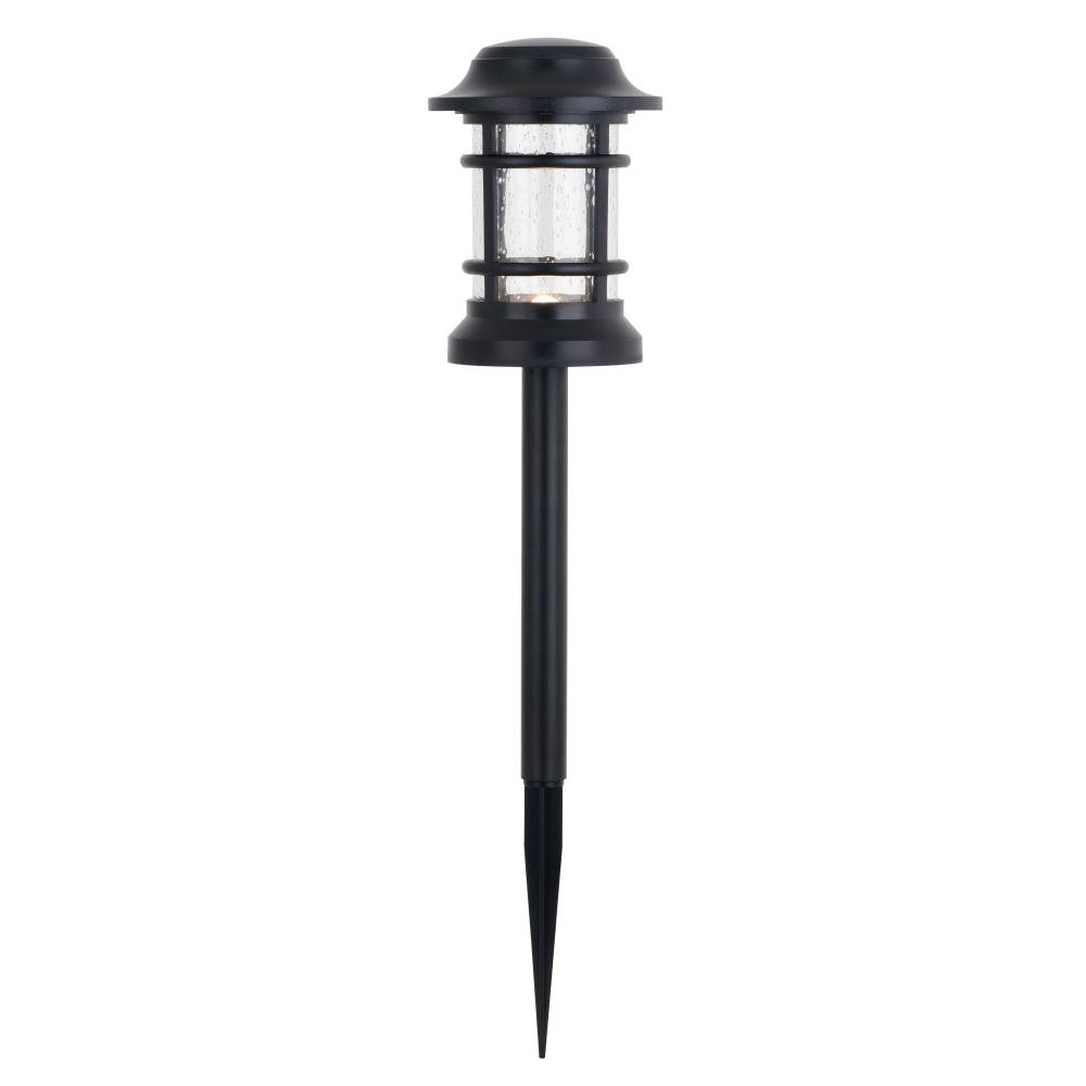 The Westmont low voltage integrated LED path light features a timeless mission design while offering functionality, energy savings, and security for your outdoor spaces. This decorative landscape light features a black finish with a clear seeded glass shade to coordinate perfectly with your exterior. Connect this walkway light with other landscape lighting products to customize and highlight your outdoor spaces. Ground stake and connector cable included. Low voltage transformer required (sold separately). This light offers functionality, energy savings, and security for your outdoor spaces.
