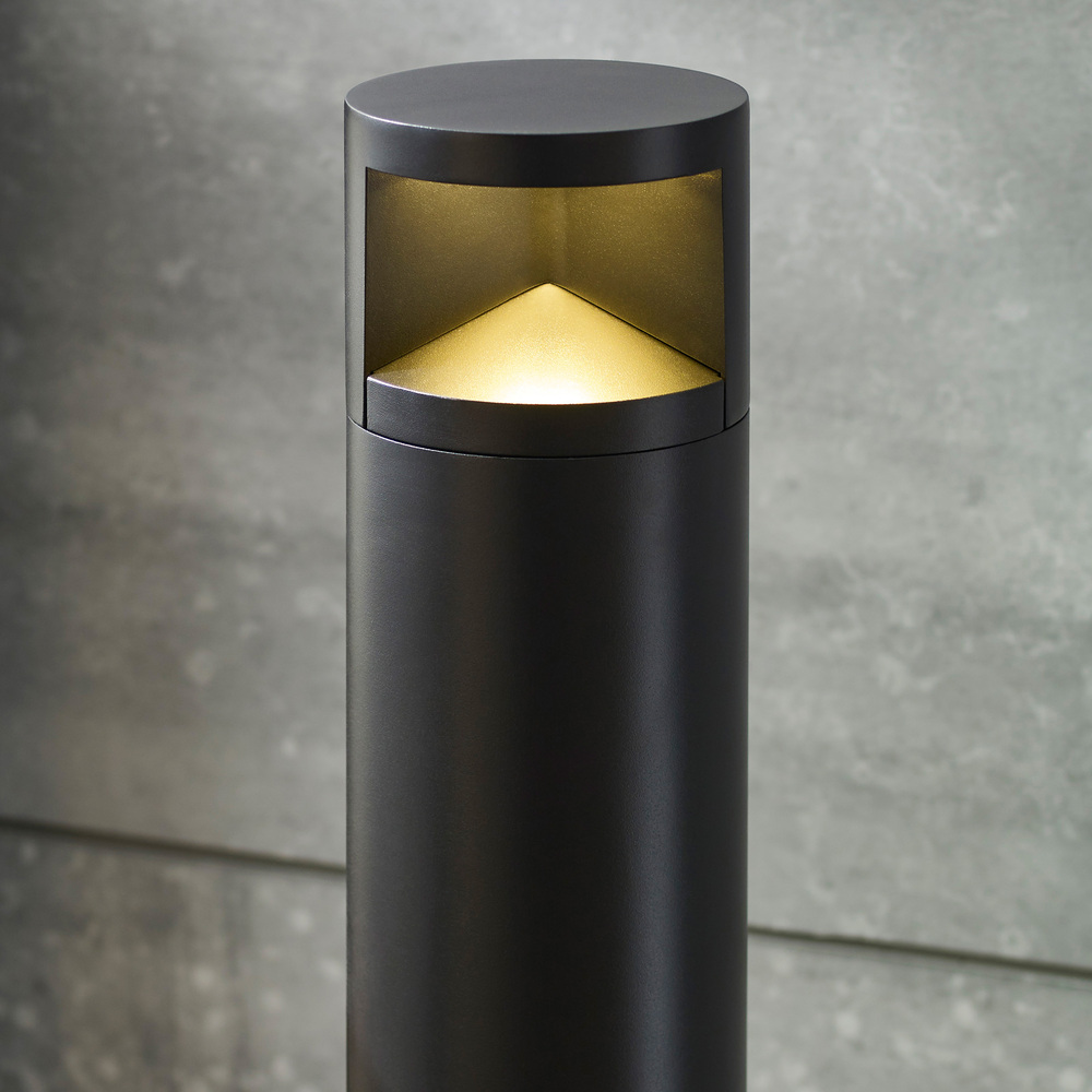 The Arkay Three LED bollard by Sean Lavin features an understated, contemporary design for outdoor lighting that blends beautifully with surrounding architecture and landscape details. The Arkay Three bollard is topped with a band of light that aims symmetrical illumination downward to create controlled pools of light, ideal for outdoor path and campus illumination. Available in modern finish options.