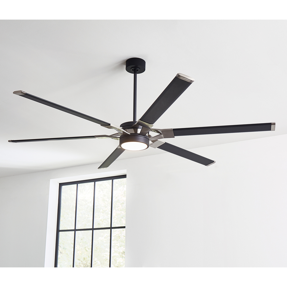 The Sean Lavin Loft 72 in Midnight Black features a 125.0 X 25.0 6 speed motor with a Thirteen degree blade pitch. With a unique split blade iron design, two-tone finish combinations and extruded aluminum blades, Loft is ideal for modern homes and commercial environments. The large-scale 96” fan has a powerful DC motor that uses minimal electricity and a bright white energy-saving LED downlight. Circulate air and create a strong base of ambient light in your projects with Loft by Sean Lavin.