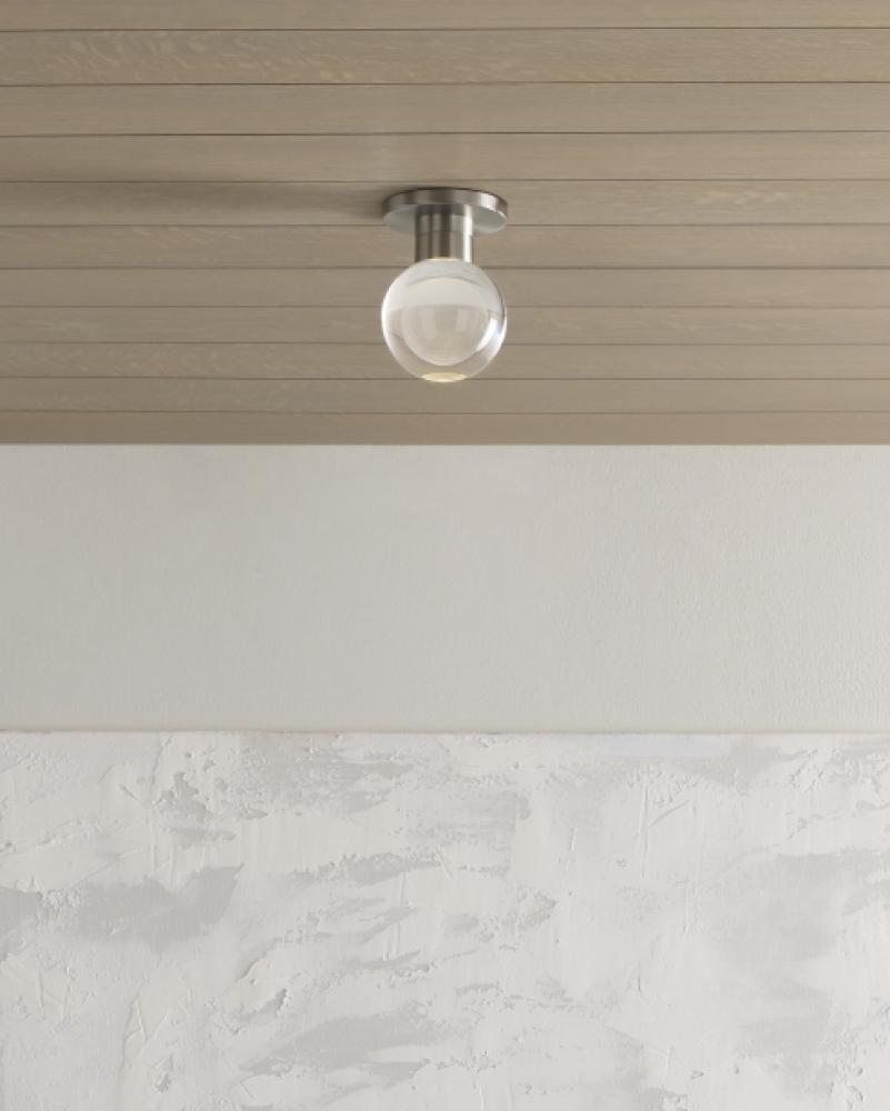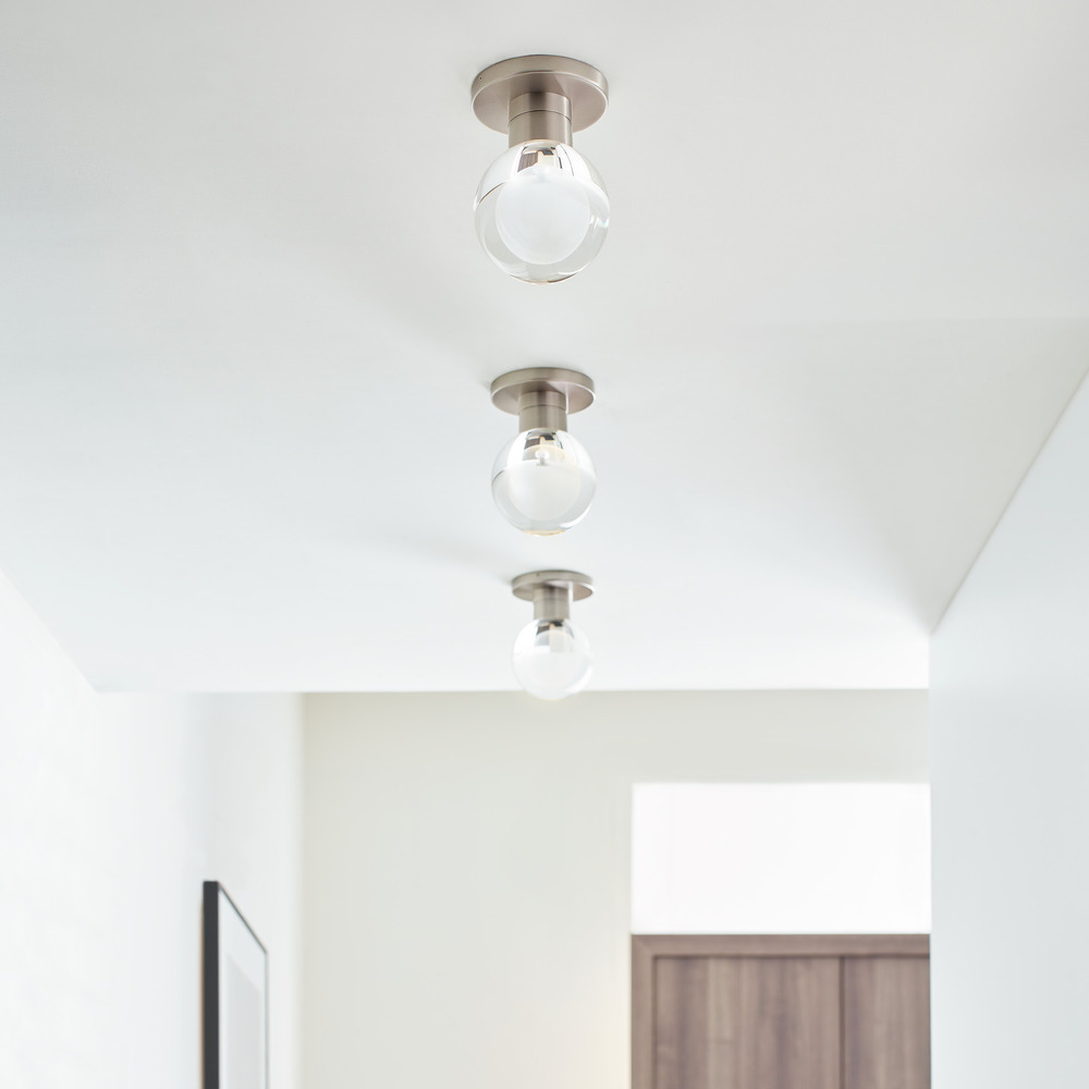 The Mina ceiling flush mount light by Sean Lavin is unique in that it is highly-customizable and brings character and sophistication to any space. The decorative accessories are illuminated by a downward-firing LED that is hidden within the minimalist socket and canopy. Available in modern finishes. With a modest scale the Mina is ideal for living room lighting, home office lighting and bedroom lighting. The Mina comes with an energy efficient integrated LED lamp, this lamp option is fully dimmable to create the desired ambiance in your any space.