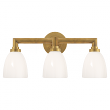 Wilton Triple Bath Light in Antique Nickel with White Glass