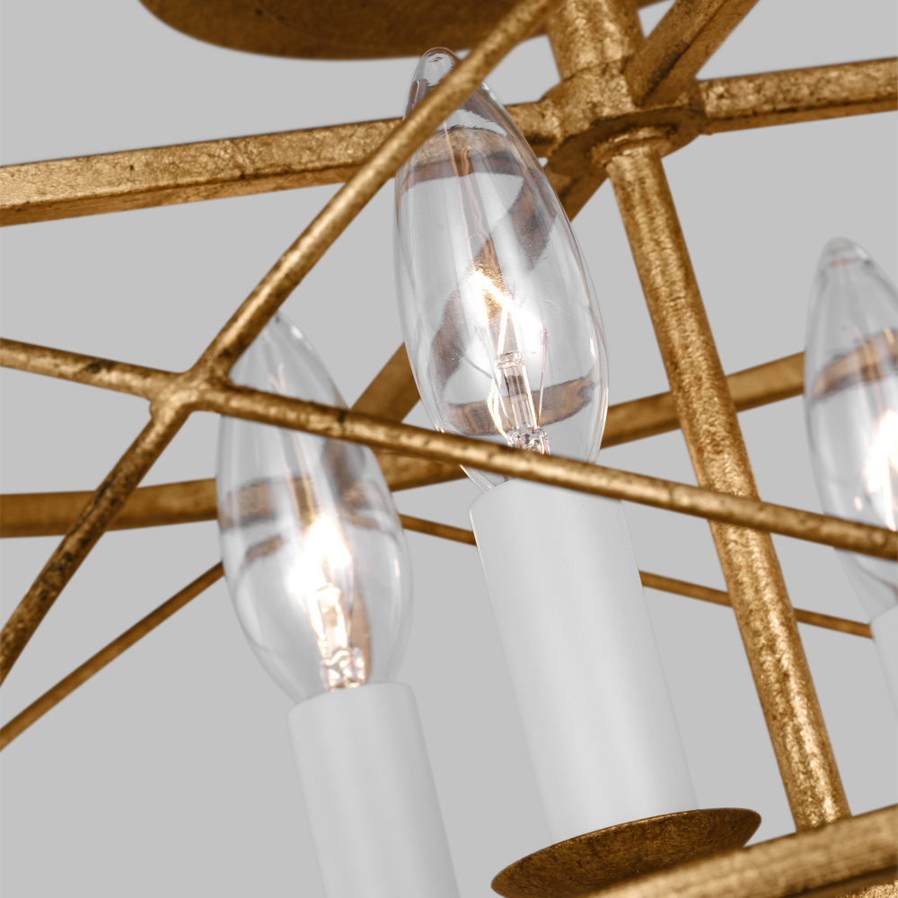 The Beatrix series by Chapman & Myers is open-caged design chandelier adding a bright light to any modern farmhouse home decor. It features white candelabra candle holder and refined finishes, showing a classic and rustic flair. Each lantern has a distinctive X cross detailing on their frame which adds both strength and visual interest. Ideal for over a kitchen island or dining room table.